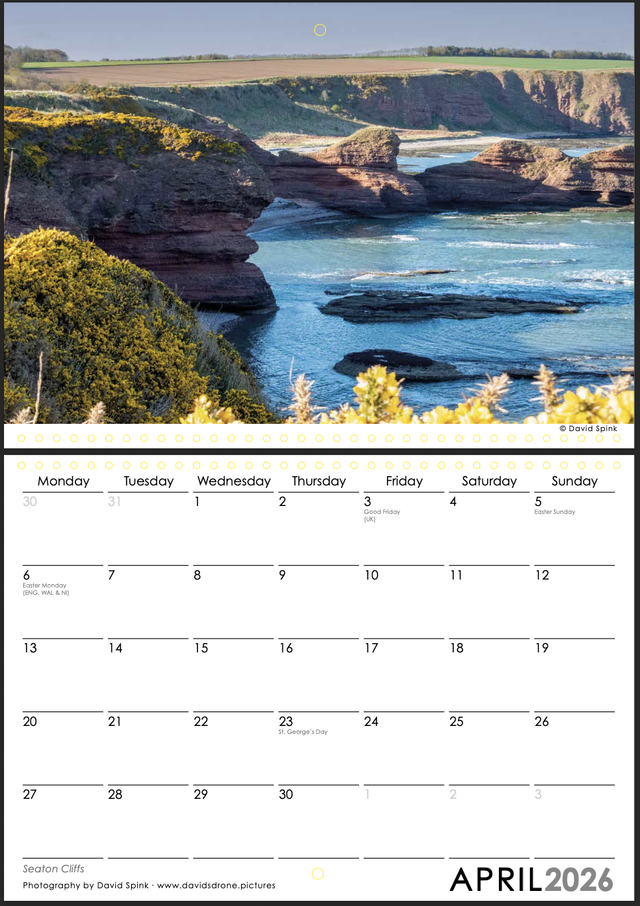 Arbroath 2026 wall calendar featuring 13 stunning images taken by David around Arbroath, Scotland. Each month features an A4 sized picture with the days of the month displayed below with room to write appointments, etc.